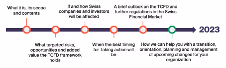 ▪ The TCFD framework is generally voluntary for companies to apply - however, the Swiss government has decided to make them mandatory for public companies as of 01 January 2024