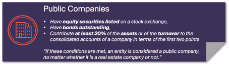 Public companies in this context are qualified as such, if they fulfil following conditions:[15]